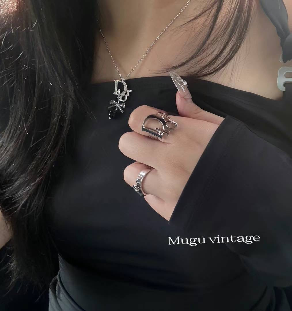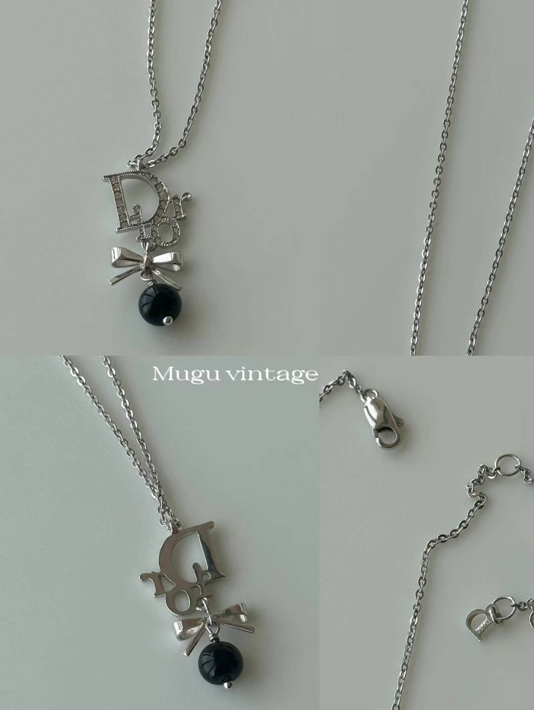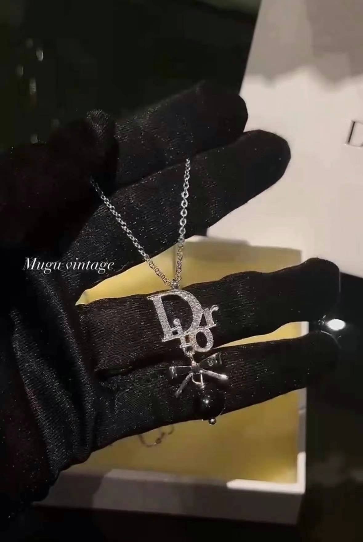 Dior 2008 ribbons & pearl silver rhinestone necklace