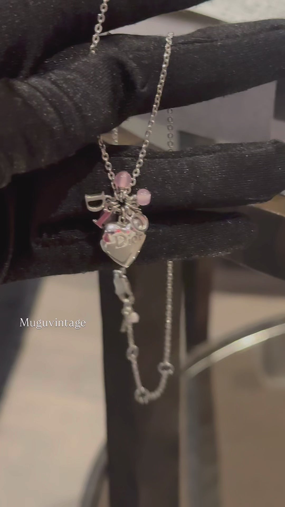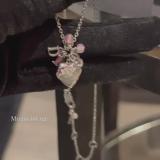 Dior pink beaded heart necklace