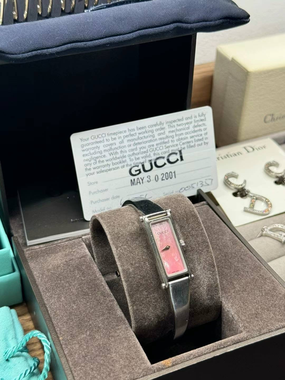 Gucci pink shell quartz watch