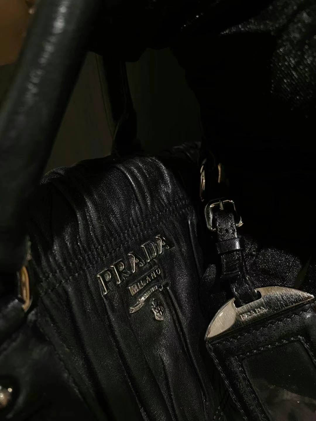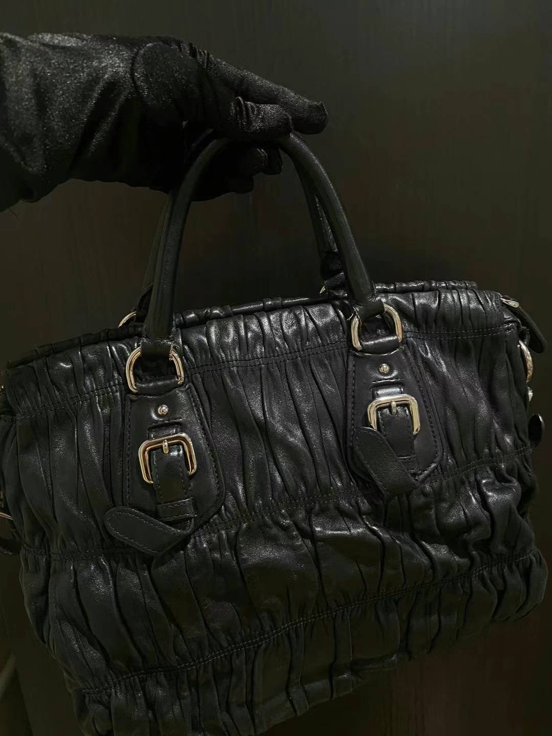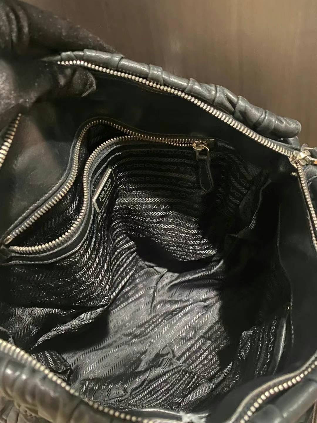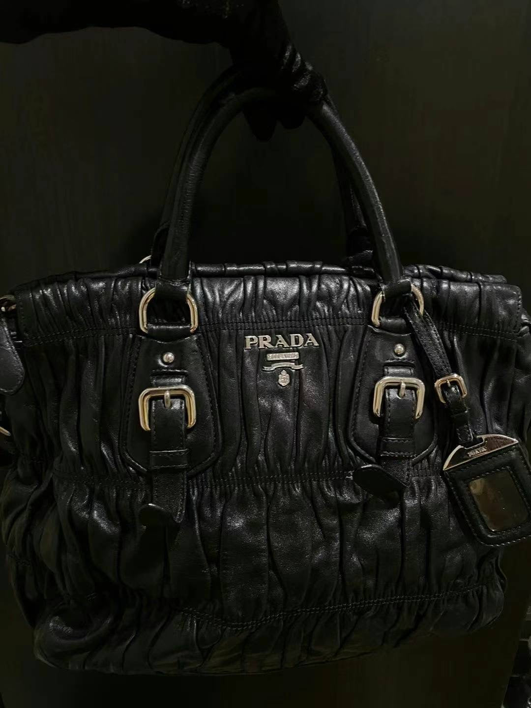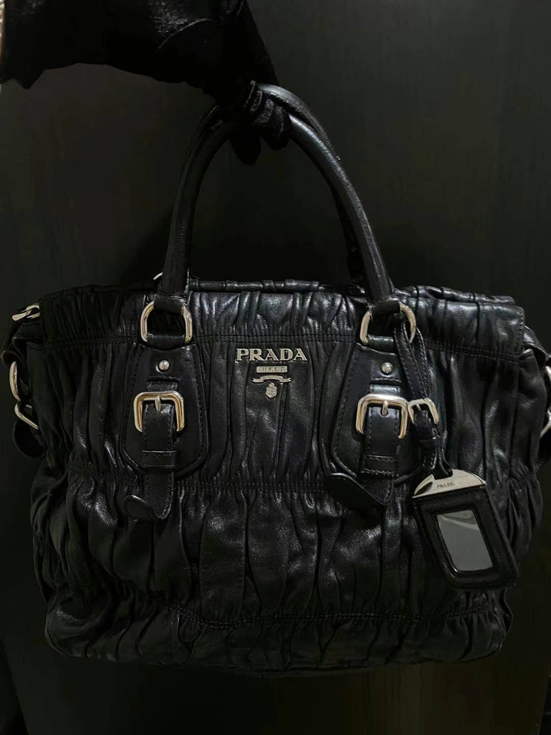 Prada black silver ruffle tote
